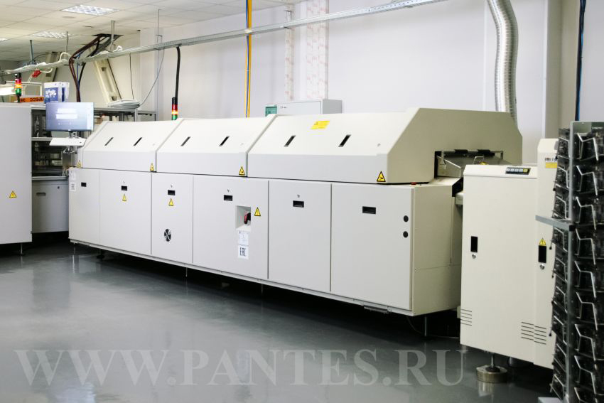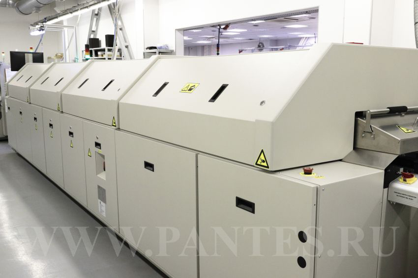 Печи данной серии обладают возможностью гибкой настройки термопрофиля и уникальной интегрированной системой очистки газовых потоков в рабочей камере. На нашем производстве используются несколько печей различной конфигурации с 7 и 10 зонами управляемого нагрева и несколькими зонами охлаждения, позволяющие нам производить высококачественные изделия любой серийности.