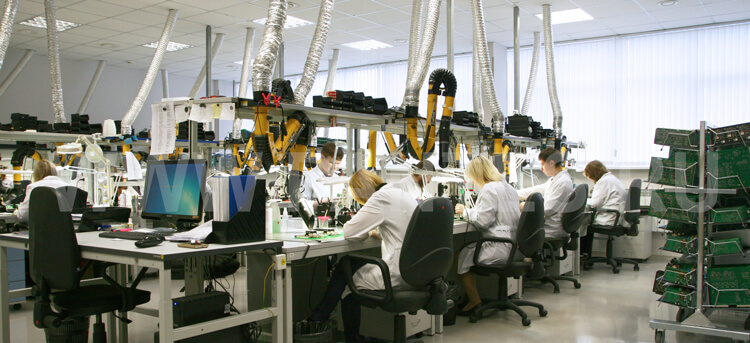 Цех выводного монтажа оснащен в соответствии с требованиями ГОСТ IEC 61340 по электростатической защите.