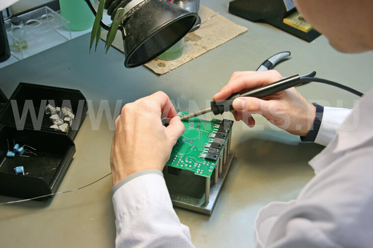 Монтаж компонентов выполняют специалисты с высоким уровнем квалификации при использовании паяльных станций.
