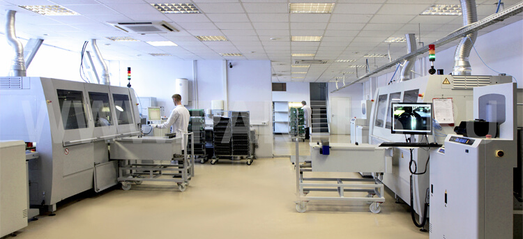 Отмывка плат осуществляется в системе струйной отмывки с использованием деонизированной воды. В отдельных случаях применяется отмывка плат в ультразвуковых ваннах с использованием специальных очистителей или дистиллированной воды.