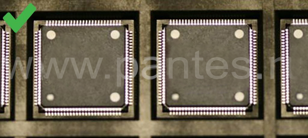 Требуются дополнительные операции на восстановление формы выводов и ручную пайку - это приведет к увеличению сроков исполнения и трудоемкости заказа. В результате исправления не исключены случаи невозможности исправить компонент.