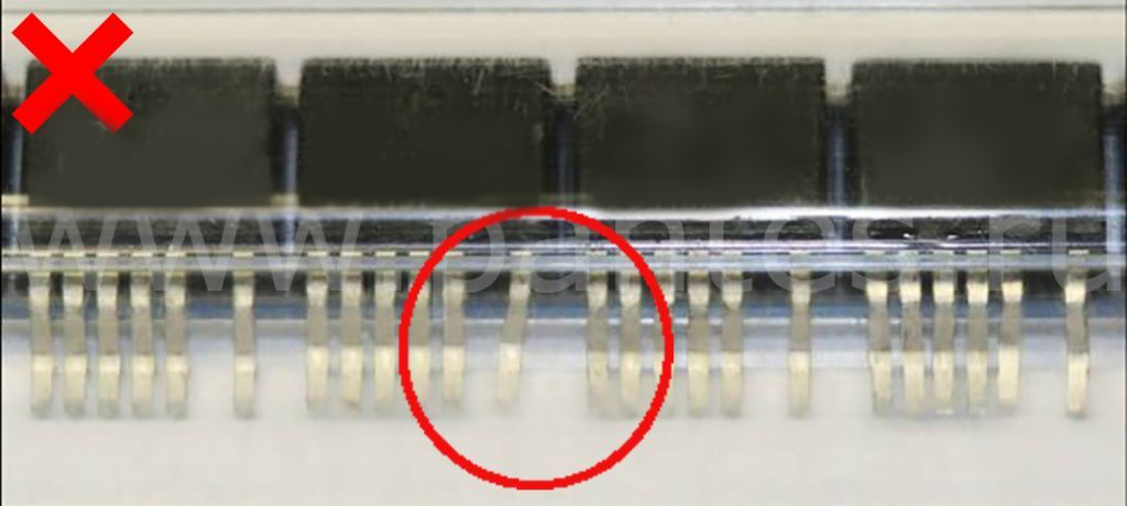 Комментарий: компоненты с подобными дефектами непригодны для монтажа.
